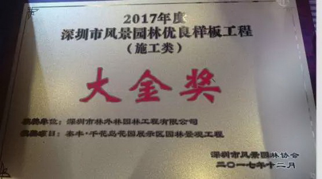 熱烈慶?!疤┴S·千花島”又榮獲大獎---深圳風(fēng)景園林類(lèi)優(yōu)良樣板工程(施工類(lèi))大金獎!泰豐出品,必屬精品!