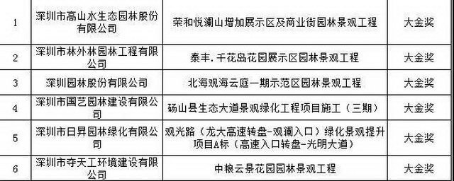 深圳風(fēng)景園林類(lèi)優(yōu)良樣板工程