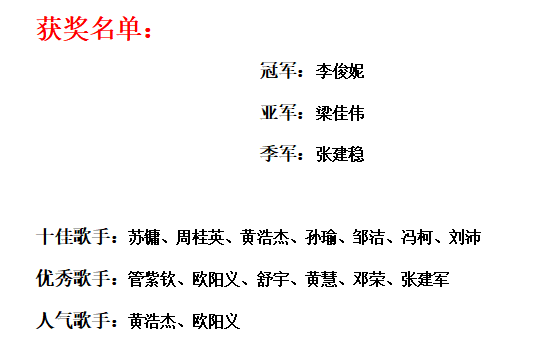 “泰度飛揚 同路高歌”決賽現場(chǎng),選手們驚人的唱功,對音準和節奏游刃有余的拿捏,穩定發(fā)揮Hold住全場(chǎng)的臺風(fēng),都讓人眼前一亮。經(jīng)過(guò)3個(gè)多小時(shí)的激烈比拼及評委的共同商議,由李俊妮、梁佳偉、張建穩三位歌手榮獲本場(chǎng)比賽的冠亞季軍。