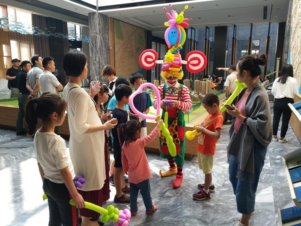 此外還有趣味十足的小丑表演,小丑滑稽搞笑表演引來(lái)了觀(guān)眾們的陣陣的歡笑,還特別為小業(yè)主們準備了各種造型的精美氣球禮品,與孩子們玩得不亦樂(lè )乎。