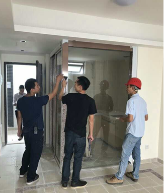 在驗收現場(chǎng),由泡泡海家園項目部、物業(yè)公司、施工單位等相關(guān)人員組成實(shí)測實(shí)量組、觀(guān)感檢查組、水電安裝組三個(gè)初步驗收小組。主要復查公共區域和戶(hù)內空間尺寸、墻地面空鼓裂縫、衛生間防水、門(mén)窗滲漏、通電和通水等觀(guān)感和功能性情況。