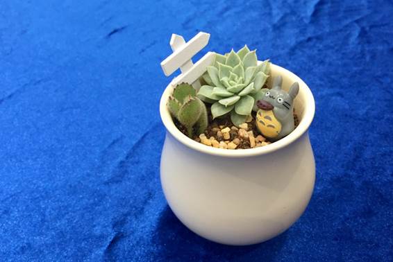 在場(chǎng)有一位特別認真的女士,她大功告成的作品猶如一件精致而特別的工藝品,得知是一位幼兒園教師,平時(shí)很喜歡一些小清新風(fēng)格的手作和美食。今年剛和先生購買(mǎi)了一座泰豐牧馬湖的別墅,希望在入住后把自家的花園裝飾得美美的,要擺滿(mǎn)自己diy的多肉植物,給孩子營(yíng)造出更有趣味的花園;自己多制作美食,讓家里天天都充滿(mǎn)朝氣和愛(ài)。