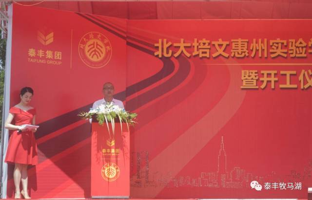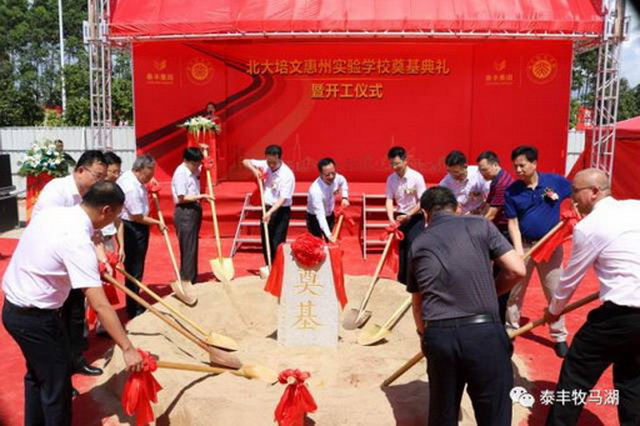 2017年6月8日上午9點(diǎn),由泰豐集團在泰豐·牧馬湖斥巨資打造的重量級教育配套——北大培文惠州實(shí)驗學(xué)校舉行盛大奠基儀式。出席儀式的有大亞灣管委會(huì )副書(shū)記:張添才先生;惠州大學(xué)校長(cháng):彭永宏先生;大亞灣管委會(huì )副主任:楊遠輝先生;大亞灣宣教局局長(cháng):曾文浪先生;北大培文副總裁、陽(yáng)光教育集團總經(jīng)理:徐揚華先生;北京大學(xué)原教務(wù)長(cháng):吳寶科先生;北大附中原校長(cháng):趙鈺琳先生;陽(yáng)光教育集團廣東總校長(cháng):樊瑞先生;北大培文貴州總校長(cháng):沈連柱先生;泰豐集團董事長(cháng):吳李彬先生;泰豐地產(chǎn)副董事長(cháng)兼總裁:袁毅先生;泰豐地產(chǎn)董事:許浩先生;惠州市豐泰城房地產(chǎn)有限公司董事:陳閣洲先生;以及泰豐集團的各位領(lǐng)導和合作單位的各位嘉賓。