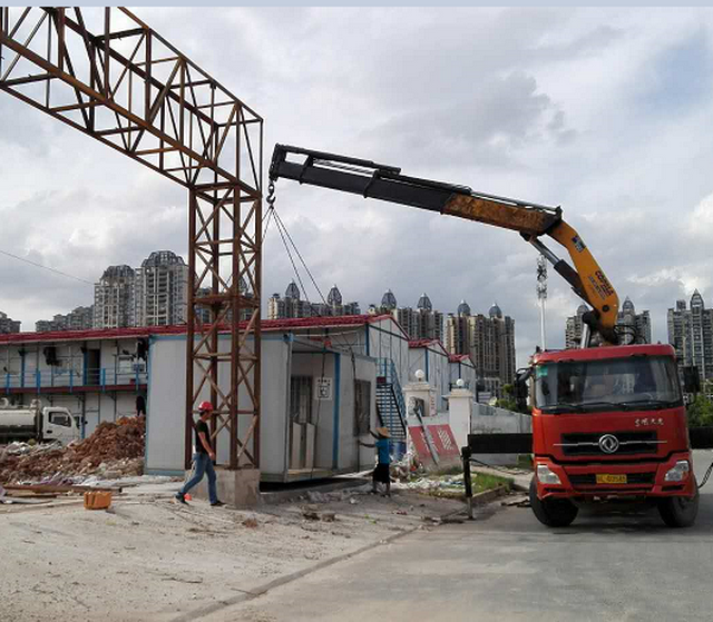 二期總包施工主入口大門(mén)門(mén)柱安裝中。
