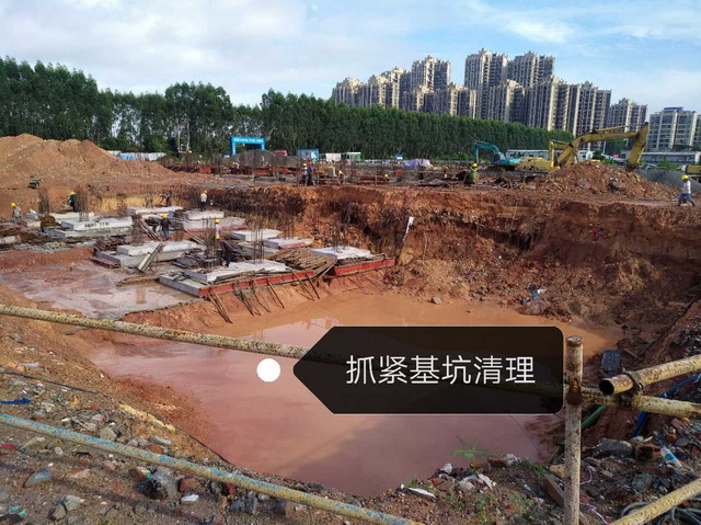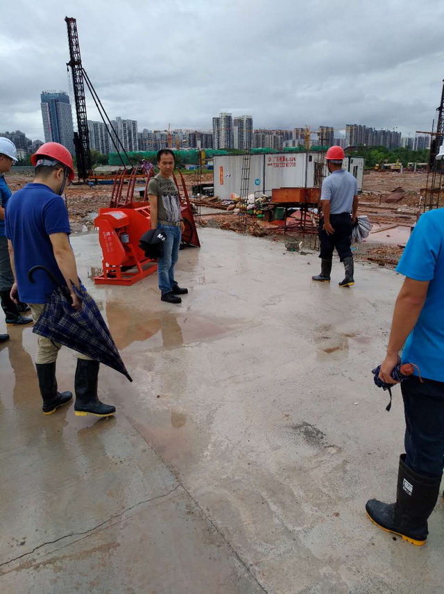 近期連續的大雨、暴雨,嚴重影響了施工。將挖好的基坑給泡了,項目部領(lǐng)導和工程師們檢查現場(chǎng),并在雨停后指揮工人趕快抽水、排水,搶救被泡的基坑。