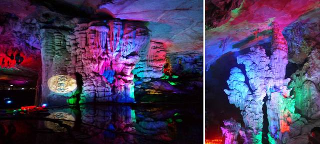 洞中有洞、有河、有橋,鐘乳石在燈光的影射下,展現出千姿百態(tài)、瑰麗多彩、神秘莫測之態(tài)勢。