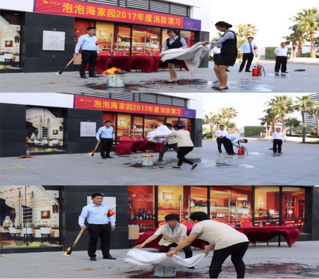 本次消防演習由泡泡海項目總經(jīng)理和物業(yè)經(jīng)理?yè)慰傊笓],主要有四個(gè)方面內容:消防知識宣講、消防器材的使用演練、急救知識宣講與模擬演練、初期火災的撲救演習。